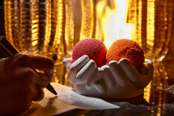 В ресторане Avero mio гости могут заказать авторский парный десерт “Мужчины с Марса – женщины с Венеры” (1300 руб.), подаваемый в ладонях Микеланджело и дополненный свитками-валентинками и приятным бьюти-подарком от “Селенцин”. Две сферы из белого и черного шоколада с бисквитом Мадлен и конфитюром из клубники, апельсина и корицы – это настоящее признание в любви, вербализировать которое можно на бумаге: на свитках можно написать друг другу приятные слова и даже дать обещания, а затем сжечь при помощи свечи. Десерт несет большой философский смысл: притяжение таких разных Марса и Венеры неизбежно; между ними – страсть и созидание, хаос и гармония, и из всего этого рождаются чувства и эмоции.