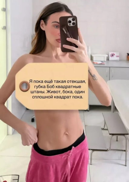 Я еще такая отекшая, Губка Боб квадратные штаны. Живот, бока — один сплошной квадрат пока. Но зато хорошо восстанавливаюсь, на днях будут снимать швы, — поделилась Водонаева.