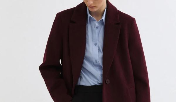 Чтобы усилить эффект, создавайте полностью монохромный образ – трикотажный костюм или брюки со свитером того же бордового оттенка. Но такое пальто хорошо дополняет и деним, единственный нюанс – обувь должна быть нейтральной, без активного декора.
