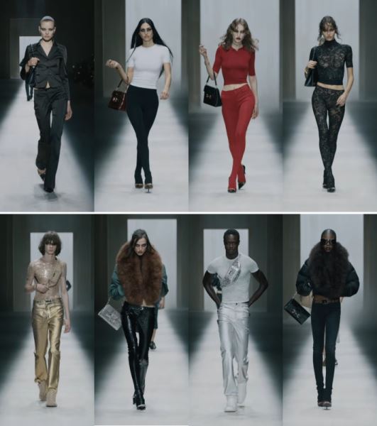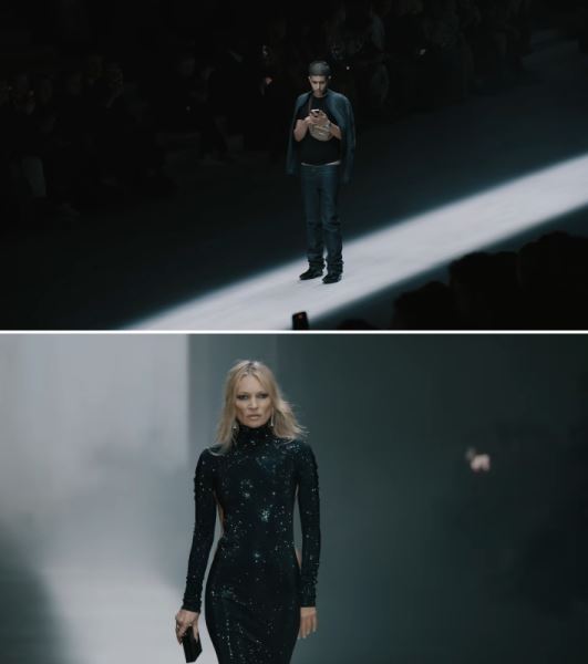 Одним из самых обсуждаемых моментов стал финальный выход Кейт Мосс – символическое возвращение иконы 90-х Gucci. Также на подиуме появились Карли Клосс и Алекс Консани, чьи образы активно обсуждаются в соцсетях. Вирусный эффект вызвал эпизод, когда модель во время прохода остановилась, чтобы написать сообщение в телефоне и убрать его в поясную сумку с монограммой – ироничный жест, который многие назвали характерным для Демны.