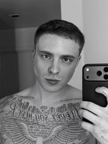На опубликованном фото артист запечатлел себя в зеркале с обнаженной грудью, акцентируя внимание не только на новой причёске, но и на татуировках.
