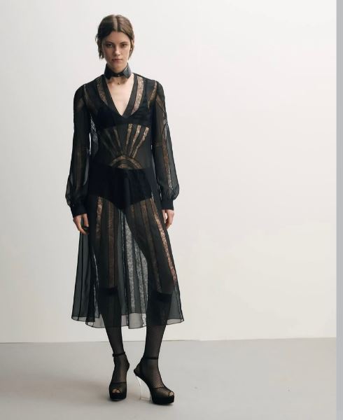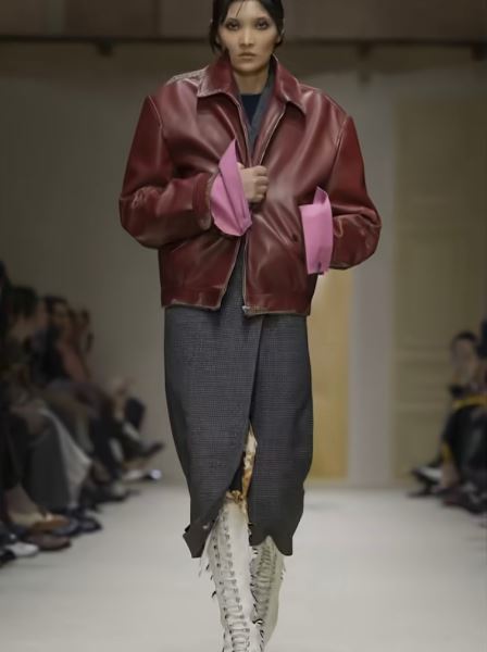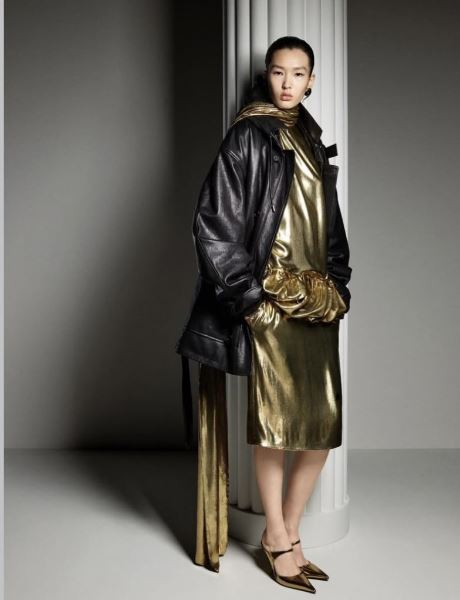 Коллекции Prada, Bottega Veneta и N°21 построены вокруг эстетики осознанной небрежности. Мятые ткани, неровные края, асимметричные жакеты и словно случайно выбившиеся детали. В основе — игра контрастов: металлик соседствует с комфортным трикотажем, мятые ткани с летящим прозрачным шифоном.