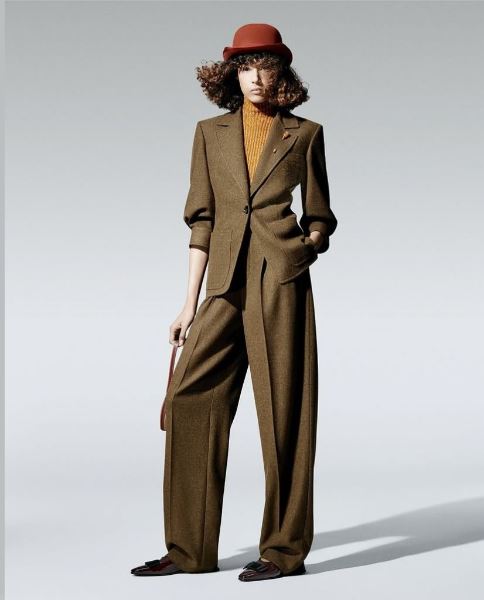 Оверсайз тоже уступает место силуэтам, подчеркивающим тело, — четкие плечи, талия обозначена. Ferragamo предлагает костюмы, построенные на хрупкости фигуры, а Bottega Veneta и Loro Piana показывают жакеты, пальто и плащи с акцентными плечами.