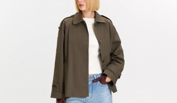 Да, в стиле милитари тоже есть место тренчам – это интересный вариант на весну, если вы устали от классики. Основа тренчей милитари – прямой силуэт, пояс, плотная ткань, спокойный оттенок (хаки, песочный, табачный). Важно, чтобы он выглядел как форма за счет посадки и линии плеч, а не как романтичная классика.