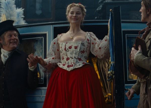 Первое, что бросается в глаза – это гардероб Кэти Эрншоу в исполнении Марго Робби. Едва появившись, Кэти пробивается сквозь серый ландшафт в рубиновых и бордовых тонах. Слишком яркие и чувственные для своей эпохи, они служат визуальным маркером ее неукротимой натуры и страсти к Хитклиффу.