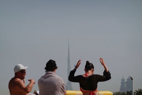 Люди на пляже на фоне небоскреба Бурдж-Халифа после иранской атаки. Дубай, 1 марта 2026 года. Фото: REUTERS/Amr Alfiky