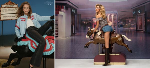 Спустя некоторое время в Сети начали активно распространяться ролики, где пользователи сравнивают эту съемку с новым рекламным проектом Miss Sixty, главной героиней которого стала Белла Хадид. На кадрах супермодель также появляется в ковбойском стиле – в коротких джинсовых шортах, сапогах и облегающих топах, позируя верхом на декоративной лошади в интерьере торгового центра. Общая атмосфера кампании отсылает к эстетике нулевых и американской поп-культуры.