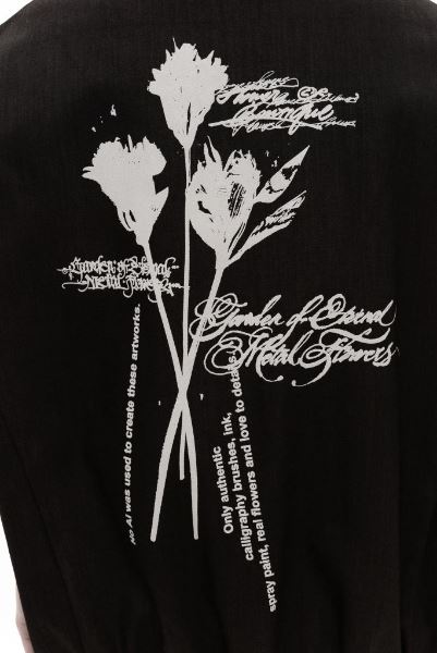 Все этапы работы — от набросков до готовых принтов — выполнены вручную без участия искусственного интеллекта с помощью аутентичных кистей, туши, красок и живых цветов. В линейку вошли вещи с принтами из отсканированных растений и уникальные изделия Piece Unique, расписанные художником лично.