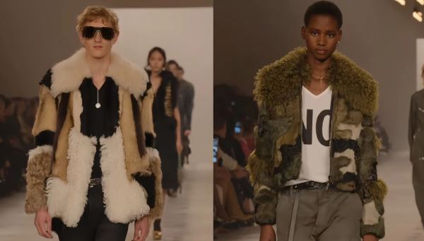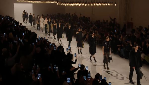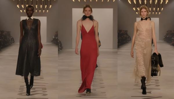 Кьюри сделала ставку на ремесло и текстуры: полупрозрачное кружево, струящиеся ткани, деним, шерсть, а также мех – преимущественно искусственный – на воротниках, манжетах и даже каблуках. Внимания также заслуживает «кружевная» кожа и анималистичные принты в аксессуарах. Сумки вновь стали сильной стороной показа: переосмысленные версии Baguette и Peekaboo, а также яркие шарфы, которые модели несли в руках, создавали эффектный контраст с почти монохромными образами.