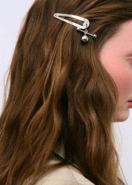 Если вы любите экспериментировать и не боитесь дерзких акцентов, обратите внимание на серебристую заколку с миниатюрными шариками. Она добавит вашей прическе нотки пирсинг-эстетики и легкой брутальности, моментально превратив даже самый простой образ в нечто особенное. Идеально для тех, кто хочет заявить о себе без слов.