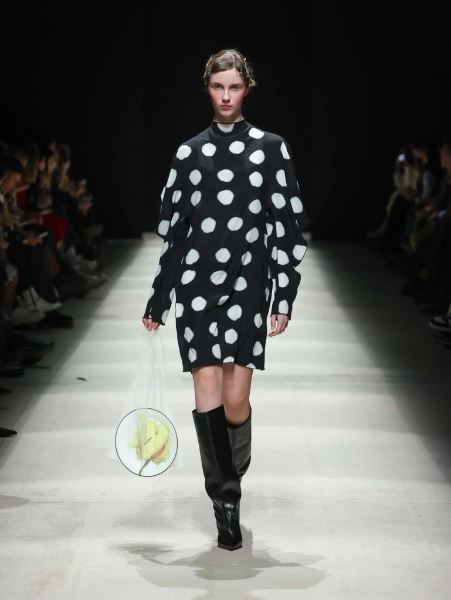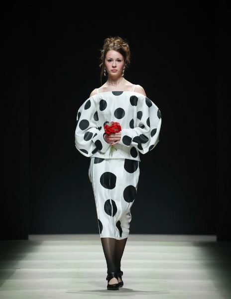 Еще одна дань истории — принт «полька дот», который буквально загипнотизировал гостей Московской недели моды. Сергей Сысоев представил платье с едва размытым узором, словно гороховые точки плыли по ткани. Александр Варлаков удивил гибридным балеро в горошек — с одним рукавом и шлейфом, развевающимся по подиуму. А екатеринбургский бренд Toomatch предложил оптическую игру — несколько изделий с разными гороховыми принтами в одном образе.