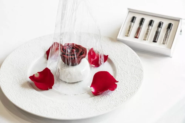 В ресторане Peshi c 8 до 31 марта можно попробовать удивительный ольфакторный десерт “Метаморфозы и розы”, созвучный нишевой парфюмерной композиции Morph Dusimano. Шоколадную розу ручной работы подают под прозрачным “клошем” из пленки, хранящим гурманский аромат с нотами белых цветов, кокосового молока, мандарина, соленой карамели, ванили и бобов тонка. Практически все эти составляющие (кроме цветов) угадываются и в десерте: кокосовый мусс с мандариновым конфи и взбитый ванильный ганаш с оттенком бобов тонка в точности передают экзотическую сладость и страстность духов. При заказе десерта их, кстати, можно получить в подарок – в составе набора из 5 миниатюр самых популярных ароматов Morph и в сопровождении сертификата на покупку в сети магазинов “Рив Гош”.