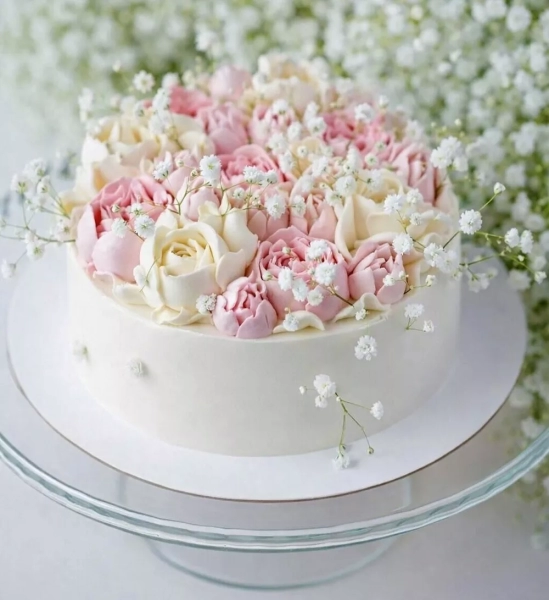 Торт, украшенный живыми цветамиТорт, украшенный живыми цветами