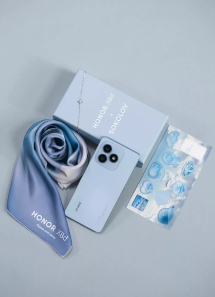 HONOR и SOKOLOV выпустили совместный лимитированный бокс на стыке технологий и ювелирного дизайна. Проект вдохновлен новым смартфоном HONOR X8d, который делает ставку на легкий дизайн, автономность и AI-функции, и идеей стиля как формы самовыражения. В бокс вошли платок, браслет SOKOLOV с парящим самолетом и набор стикеров для смартфона.