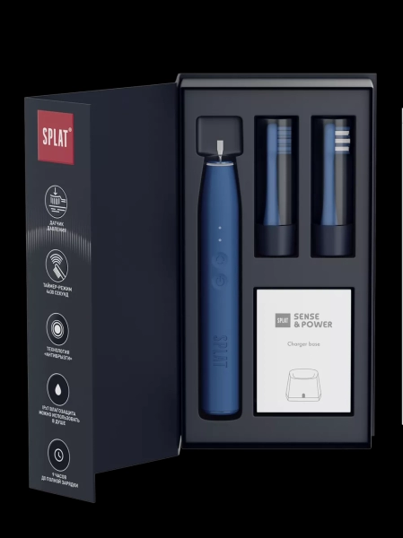 В премиальную серию продуктов SPLAT Sense&Power вошли электрические девайсы для ухода за полостью рта: электрическая звуковая зубная щетка и портативный ирригатор, разработанные экспертами компании. Все продукты представлены в четырех глубоких насыщенных оттенках, которые сочетаются между собой: White Swan, Sparkling Grape, Midnight Blue, Wild Berry.