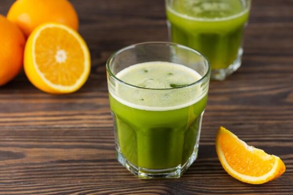Размешайте пол чайной ложки матчи в горячей воде, но не кипятке. Добавьте немного апельсинового сока и мед акации.