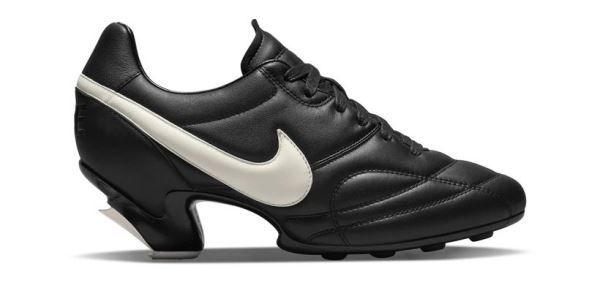 Однако чаще всего вывод футбольной или фанатской атрибутики со стадионов на подиумы не означает какой-то серьезной работы над их переосмыслением и интеграцией, а решает скорее задачу привлечь внимание к брендам и их коллекциям. Например, дерзким экспериментом в 1993 году стала переработанная Жан-Полем Готье модель футбольных бутсов с многосантиметровыми шипами. Свою интерпретацию специализированной обуви представил спустя восемь лет Miu Miu, поместив бутсы на короткие декоративные шипы и невысокий каблук. Сезоном позже похожий прием использовали и Comme des Garçons с Nike, совместно переработав дизайн классических футбольных бутс Nike Premier, акцентной деталью которых стал массивный каблук необычной формы. Еще более смелым экспериментом год спустя стали ботинки в коллаборации adidas с парижским брендом BOTTER, состоящие из двух частей: их платформа выполнена в виде обычного ботинка дерби, который как будто придавлен сверху наступившей на него футбольной бутсой.